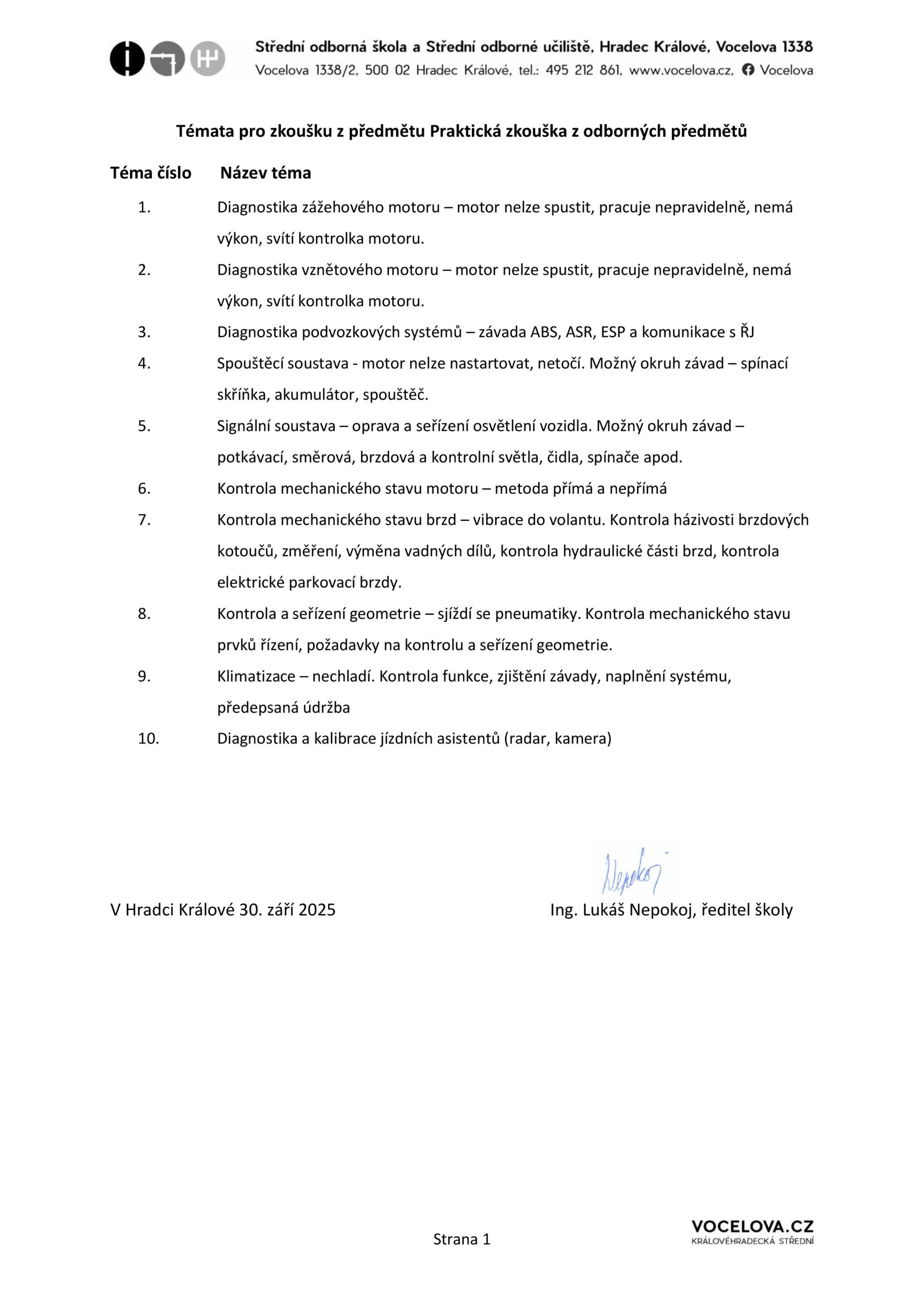 Úvod Maturitní zkoušky Struktura a témata maturitních zkoušek Autotronik Praktická zkouška z odborných předmětů