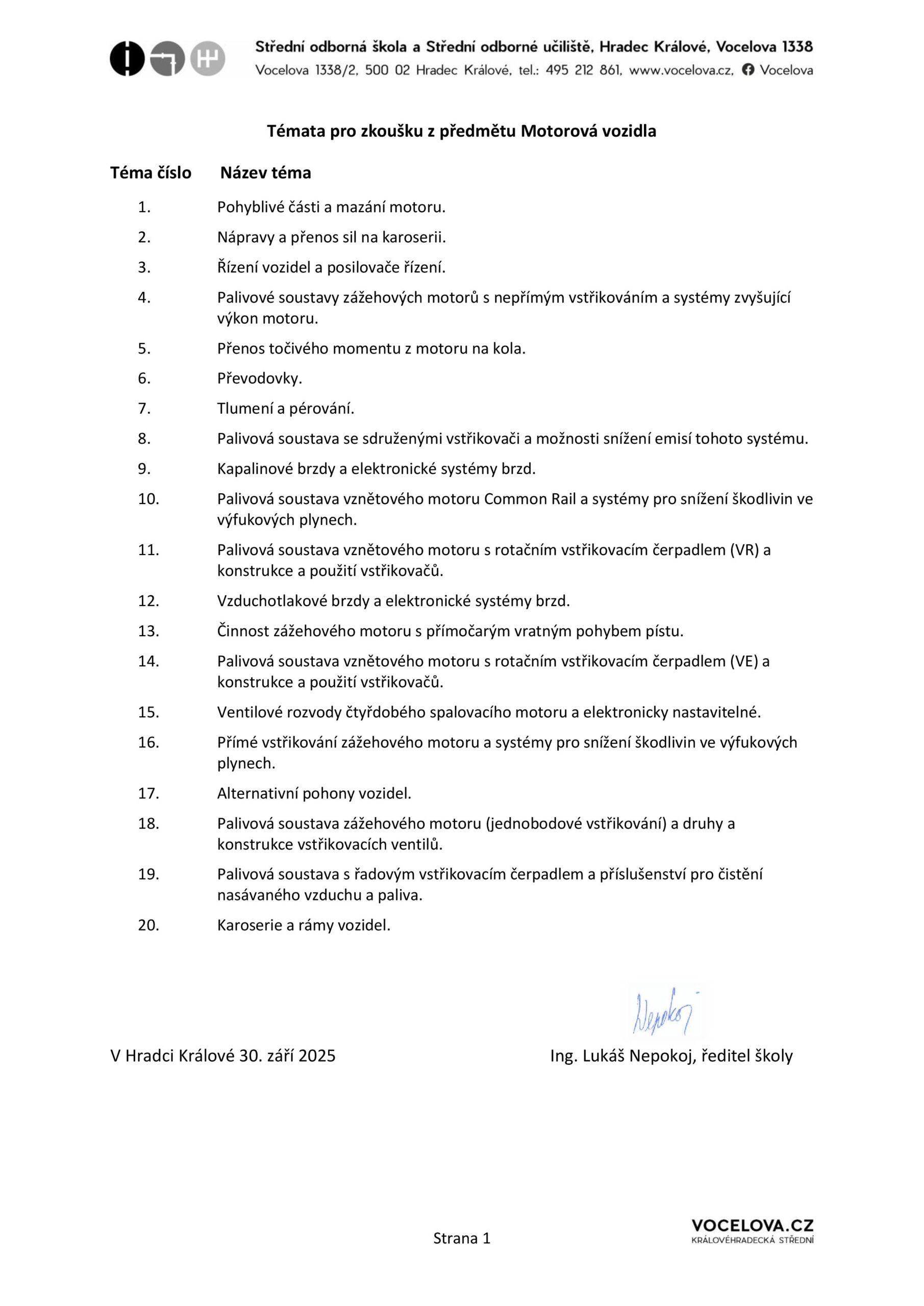 Úvod Maturitní zkoušky Struktura a témata maturitních zkoušek Autotronik Motorová vozidla