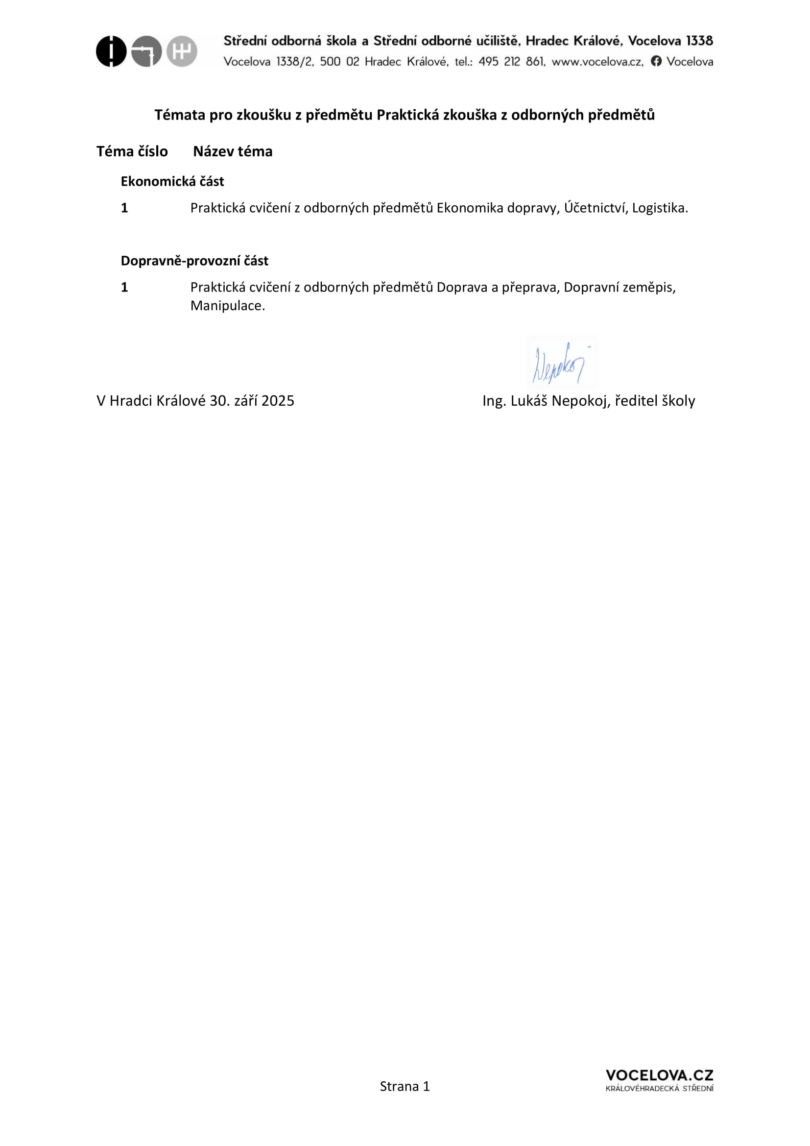 Úvod Maturitní zkoušky Struktura a témata maturitních zkoušek Provoz a ekonomika dopravy Praktická zkouška z odborných předmětů